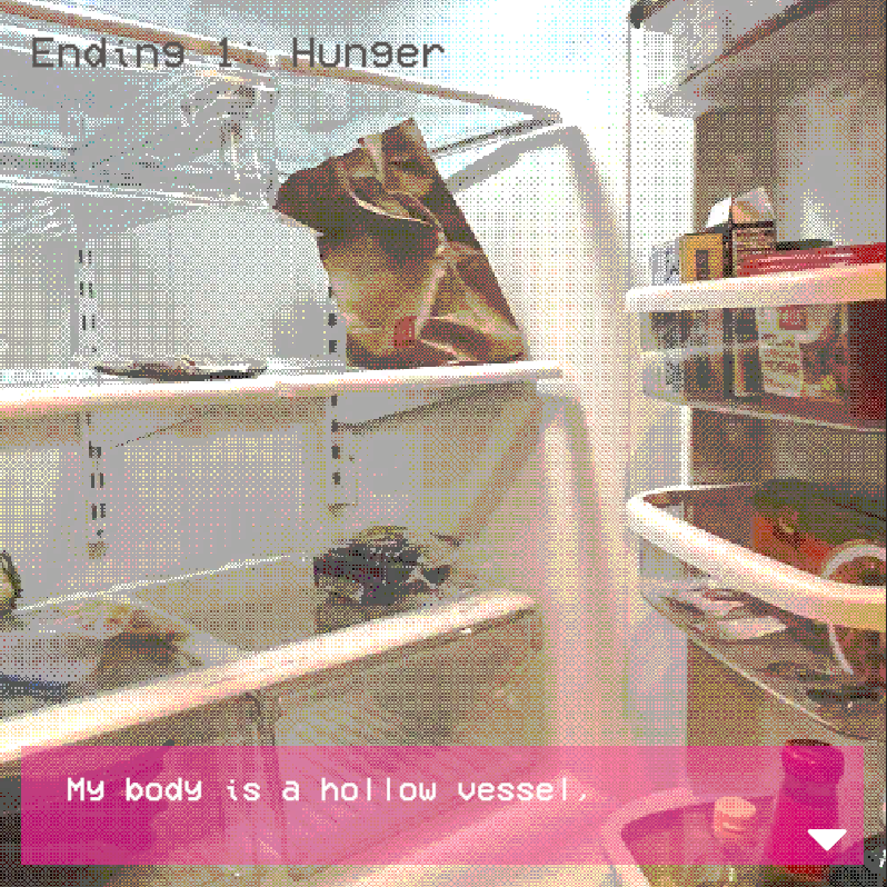 A short experience about hunger, lost, and nihility, with multiple endings. Point and click.